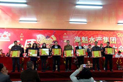 会议上,各公司领导都对今年公司的效益进行总结性报告。并颁发了2013至2014年度太阳成tyc122cc集团水产集团先进集体、先进个人等118个奖项。