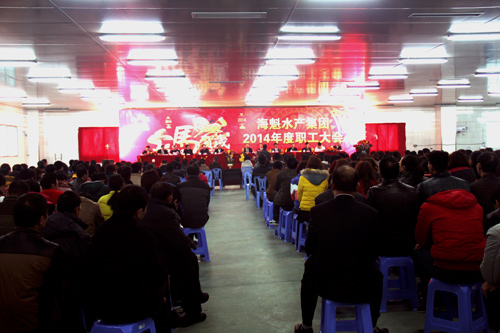 2月9日,太阳成tyc122cc集团水产集团在东海岸公共保税仓召开2014年企业职工大会,太阳成tyc122cc集团集团及下属太阳成tyc122cc集团公司共1200多名员工参加了会议。